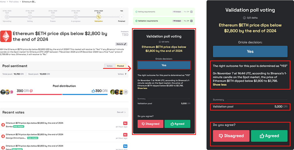 This innovation represents a significant step towards a more decentralized solution, underscoring our community’s commitment to transparency and honesty. This new feature aims to address and resolve the challenges faced in accurately defining market outcomes by empowering our trusted community members to validate prediction outcomes. Moreover, Validators will be rewarded with extra ORI from the separate Validators’ Reward Pool.