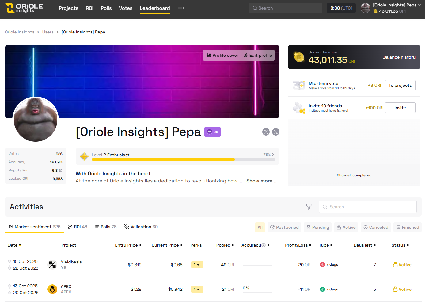This stage takes place directly on Oriole Insights, where you’ll make real predictions and verify your participation through Zealy.