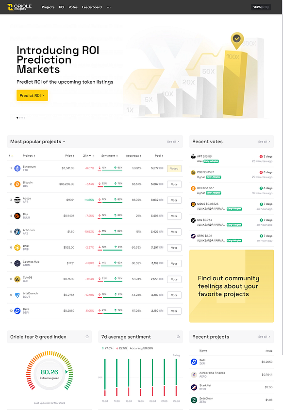 A standout feature of the Public Beta is the addition of ROI & Initial Listing Predictions, a dynamic feature enabling users to predict the market performance of newly listed cryptocurrencies. This innovative market estimates the return on investment (ROI) and price potential. It’s a valuable tool for gaining early insights into promising tokens, strategizing investments, and leveraging the collective wisdom of the Oriole Insights community.